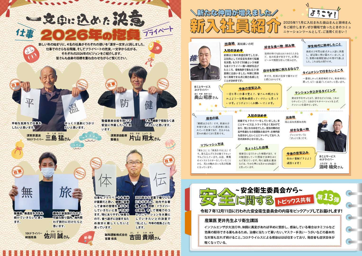みなさん仕事・プライベートとも事故を防ぐことや健康に留意することなどを抱負として掲げており、やはり運送業、「健康第一で無事故」が一番大切なことだとあらためて考えました。